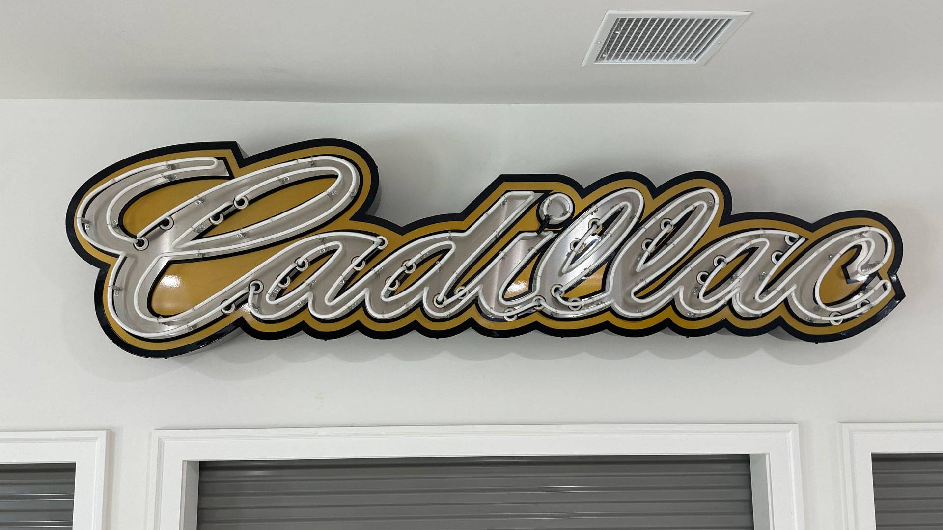 Neon road cadillac sign lit on
